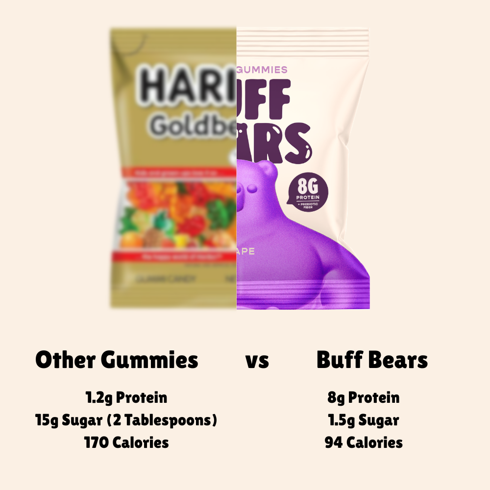 We took the classic gummy bear and made it BUFF! - Because your snacks should work as hard as you do.